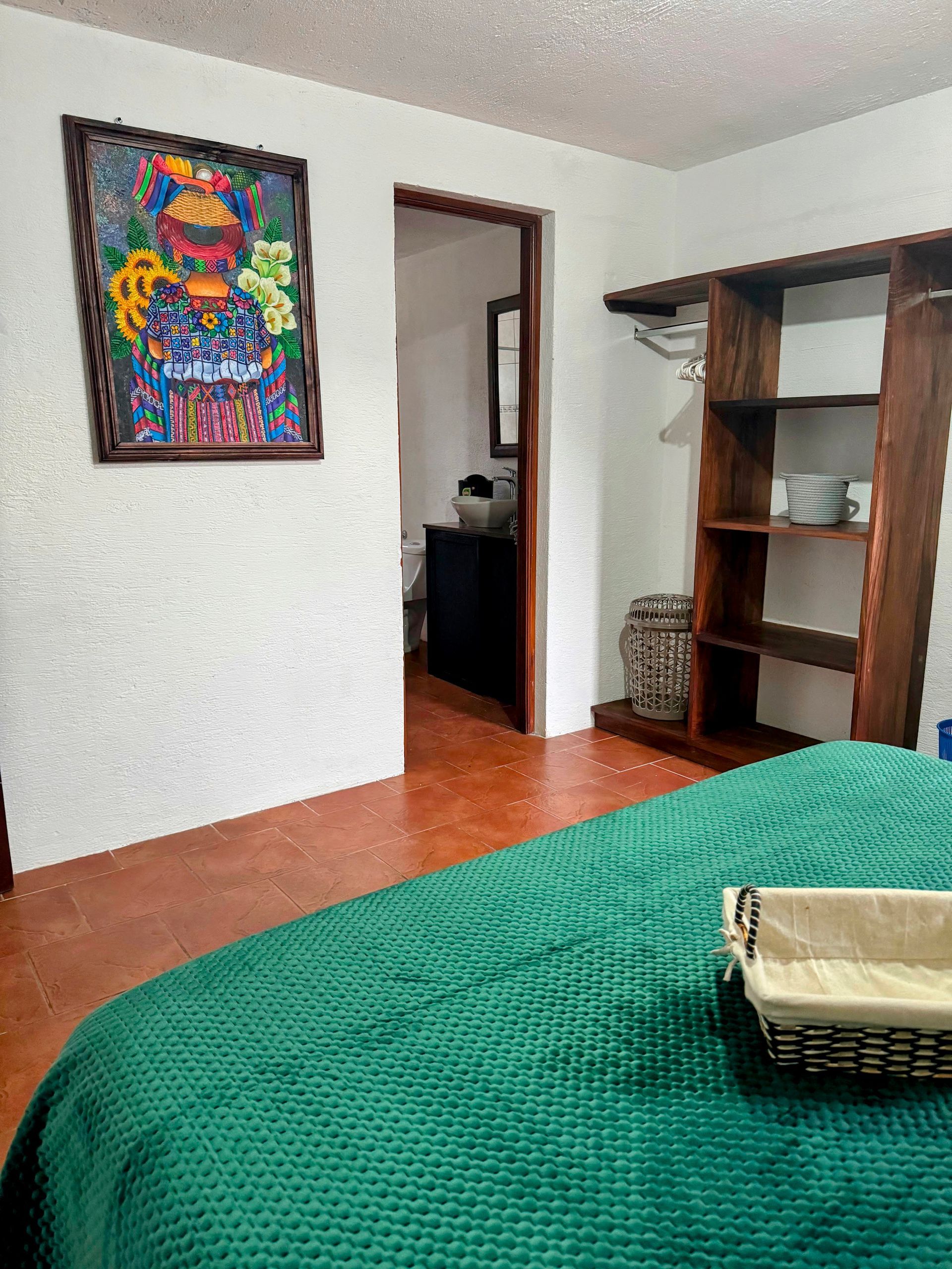 Step into our Livingston-themed room, where the vibrant Afro-Caribbean culture of Guatemala comes to life. Decorated with bold colors, tropical patterns, and handcrafted Garifuna art, this room transports you to the laid-back coastal town of Livingston.